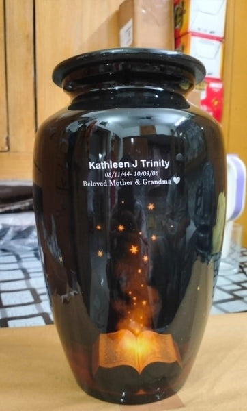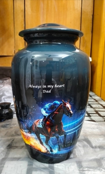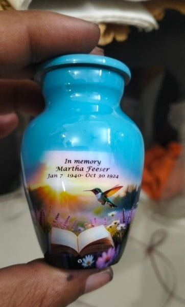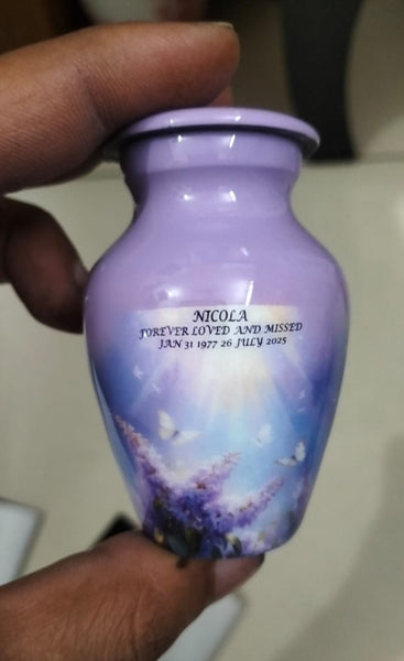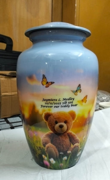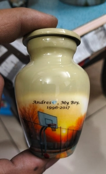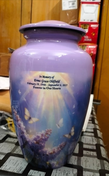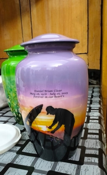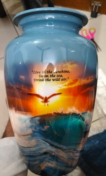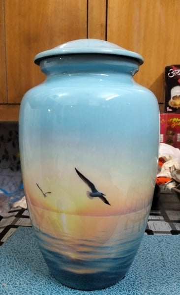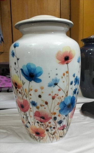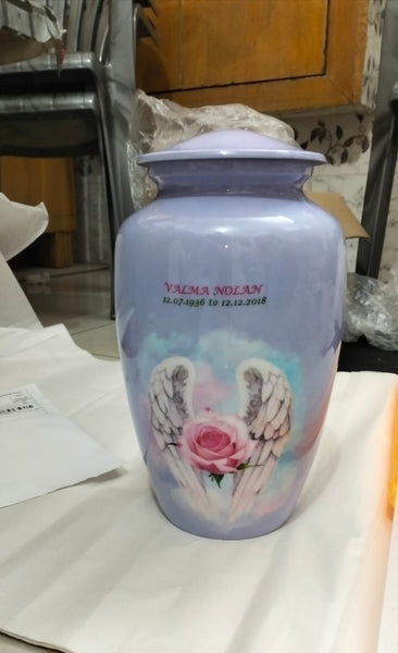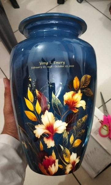 This urn is ideal for burial, funeral ceremonies, or home display, and serves as a beautiful way to preserve cherished memories. Crafted from durable aluminum with a secure threaded lid, it ensures ashes remain safely sealed.